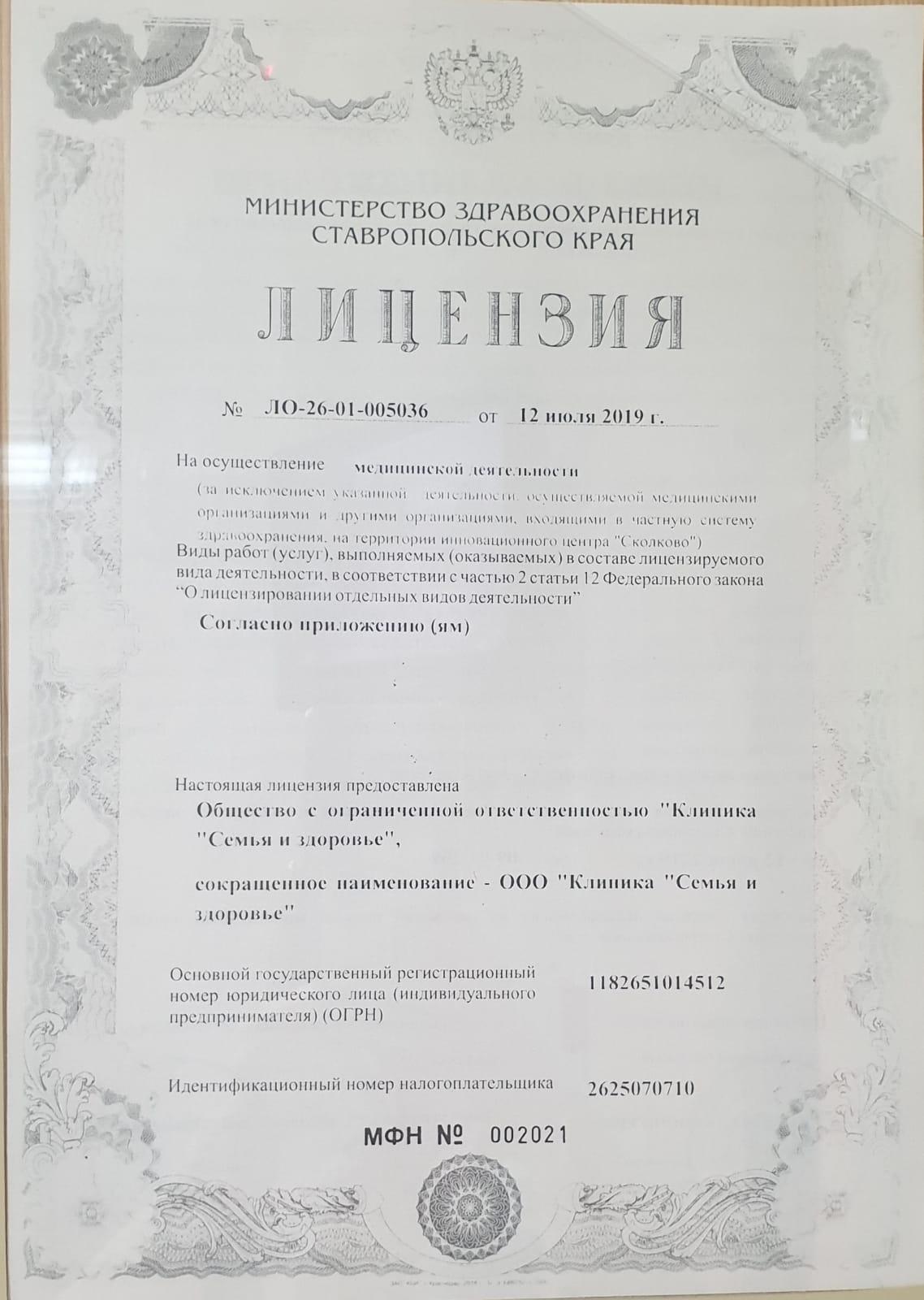 Лицензия № Л0-26-01-005036 от 12 июля 2019 г.